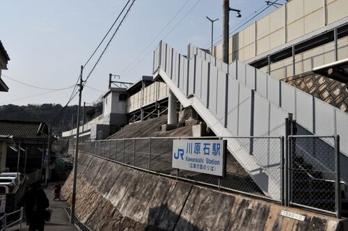 (呉) - 川原石 - (吉浦) (訪問日:2017/03/19) 呉市街地から西進して海岸通りのR31から1本山側に入った旧道から川原石駅にアプローチ。旧道から線路が見えたので、いつものとおり勘で入ってみたけど、階段道なのでバイクを置いて線路沿いに広島方向に向けて歩…