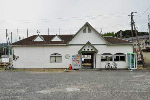 (堀江) - 伊予和気 - (三津浜) (訪問日: 2018/11/18) 三津浜駅から丘陵を越えて、堀江湾に面した平野に出たところが和気地区、伊予和気駅があります。周囲は店舗が点在する住宅地です。 伊予和気駅はお好み鉄板焼き店が併設されたメルヘンチックな無人駅。駅…