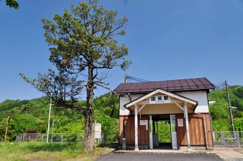 (河原) - 国英 - (鷹狩) (訪問日: 2018/04/30) 昨年、一昨年に因美線を訪問した際に行きそこねていた国英駅です。因美線を南からたどった時は南隣の鷹狩駅まで、若桜線で東からたどった時は北隣の河原駅までで帰ってしまったのは、どちらの駅も鳥取自動車道…
