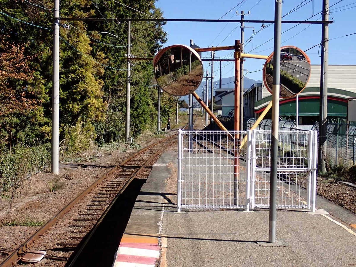 ホームは島式1面2線で改札からは構内踏切(遮断機付き)を通って入ります。改札を入った所にはトイレ(水洗洋式)があり。
