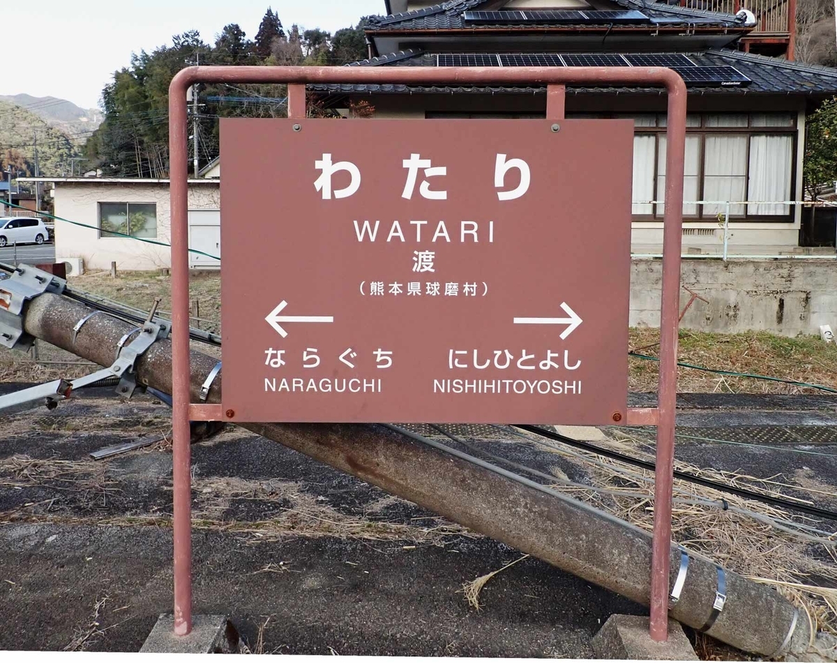 水害被害が残る那良口駅から更に球磨川を遡って、人吉盆地の出口にある渡に向かいました。那良口駅を出た所で県道が線路を渡りますが、ここの線路側の封鎖の仕方とかは少し簡単すぎのような気もしますが、只見線が長期不通だった時も似たような感じだったので、こんなものかもしれません。(JR西が三江線廃止の時に全踏切をガチガチに封鎖したのが、どうも印象に残っているもので)