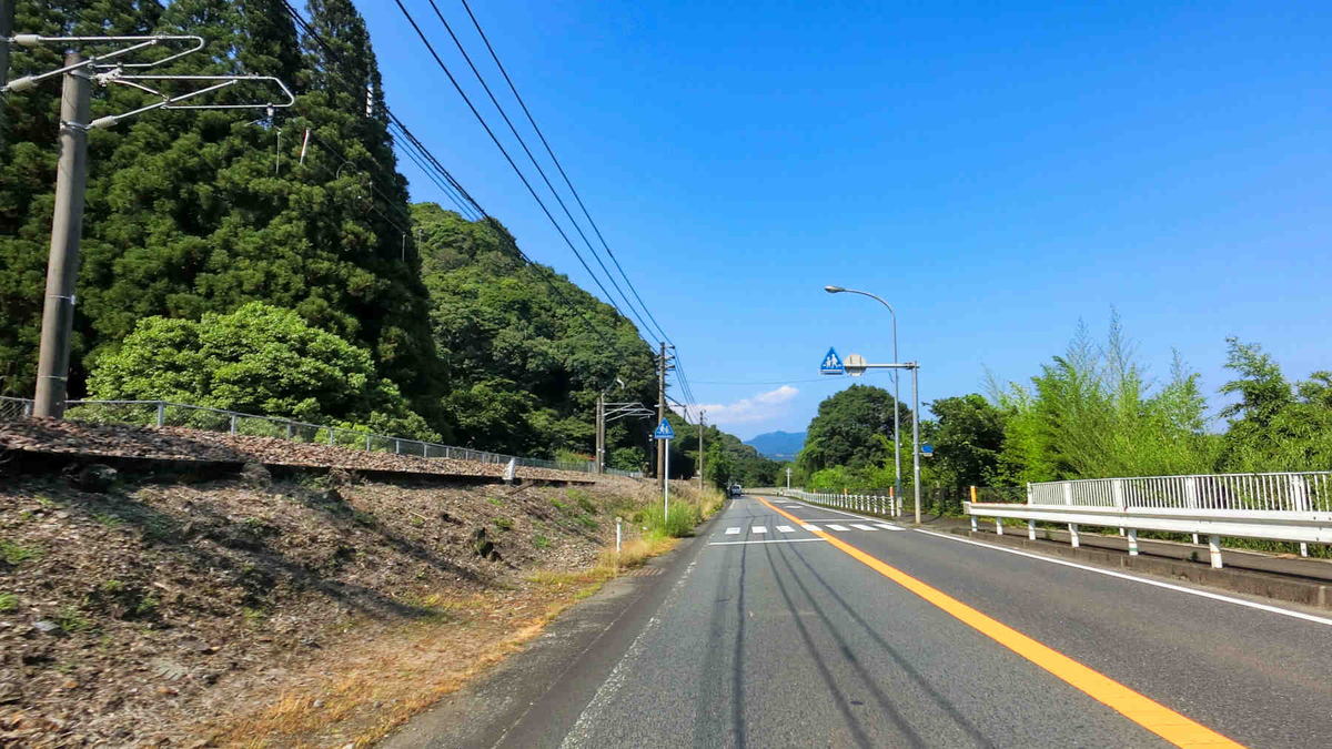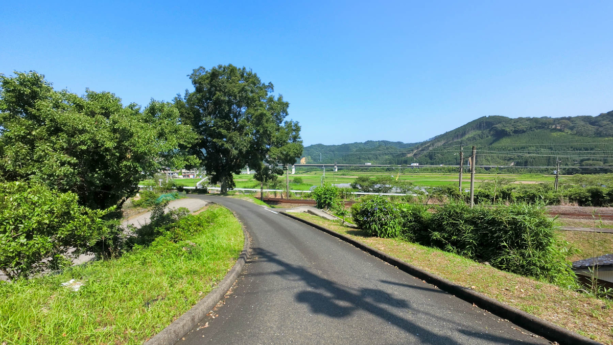 昨年の高千穂ツーリングの帰り、延岡から国道10号で北上した時の日豊本線です。北延岡駅から国道10号は日豊本線と北川に沿って山間に入ってゆきます。その途中、北川が大きく屈曲するところにある日向長井駅ですが、駅への入口は線路の反対側にあるので、集落の手前で国道から分かれ、線路をくぐって集落内の堤防道路のような小路をとおってたどりつきます。